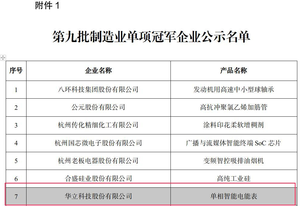 近日,華立科技股份有限公司成功入選第九批制造業(yè)單項(xiàng)冠軍企業(yè)!